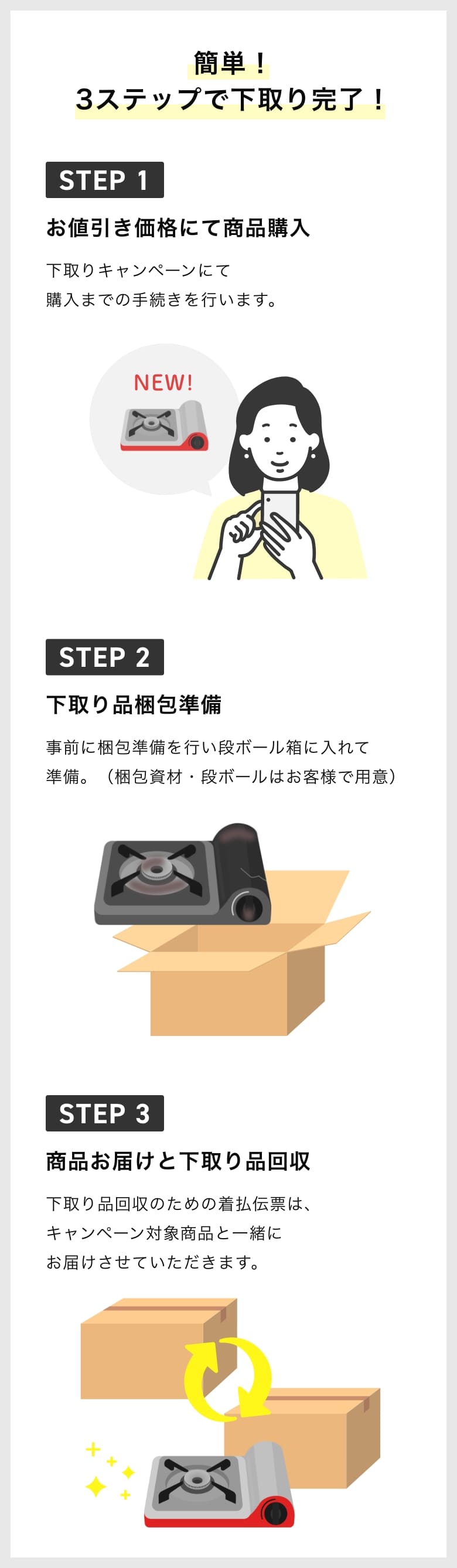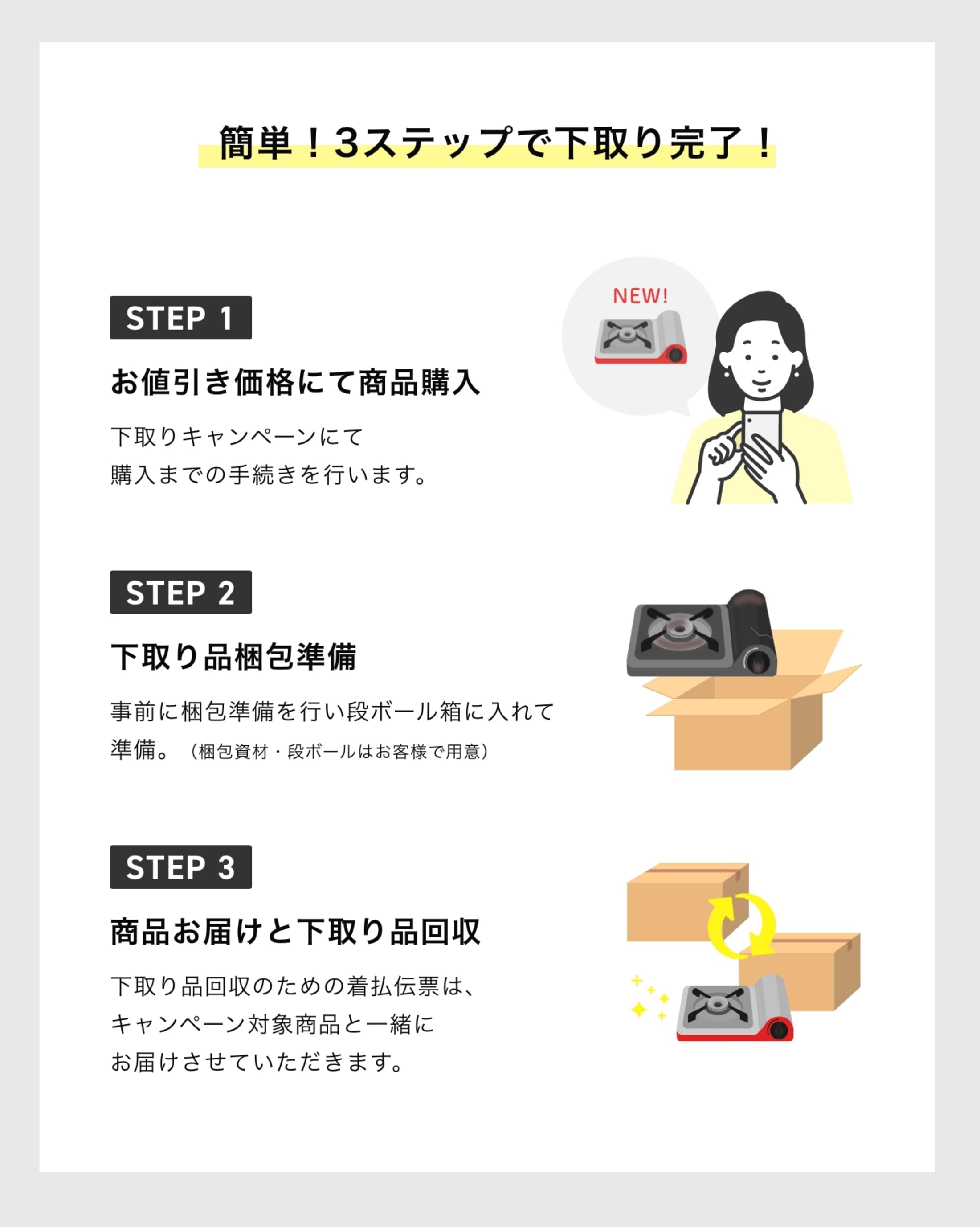 カセットガスボンベは下取り対象ではありません。同梱しないようお願いします。