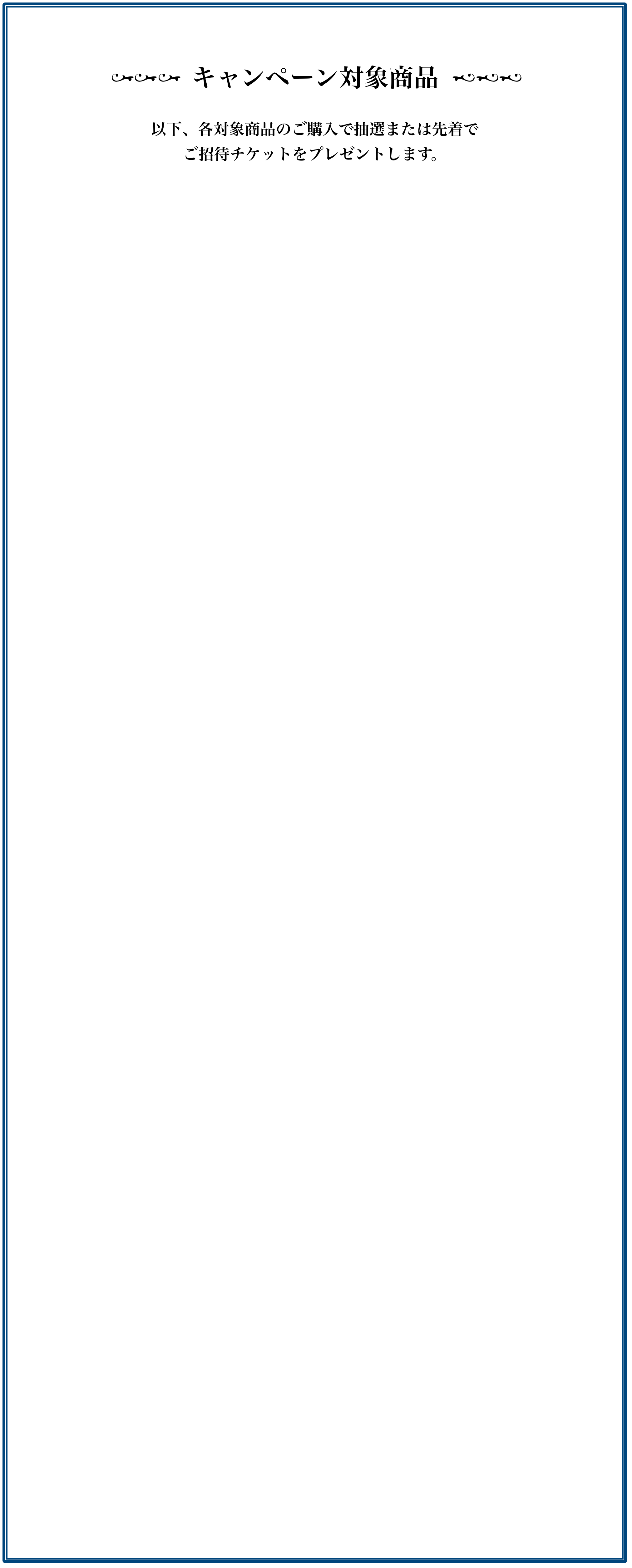 ※いずれのコースも1名様のご招待となります。ご当選者お一人様につき1名様までご来場いただけます。