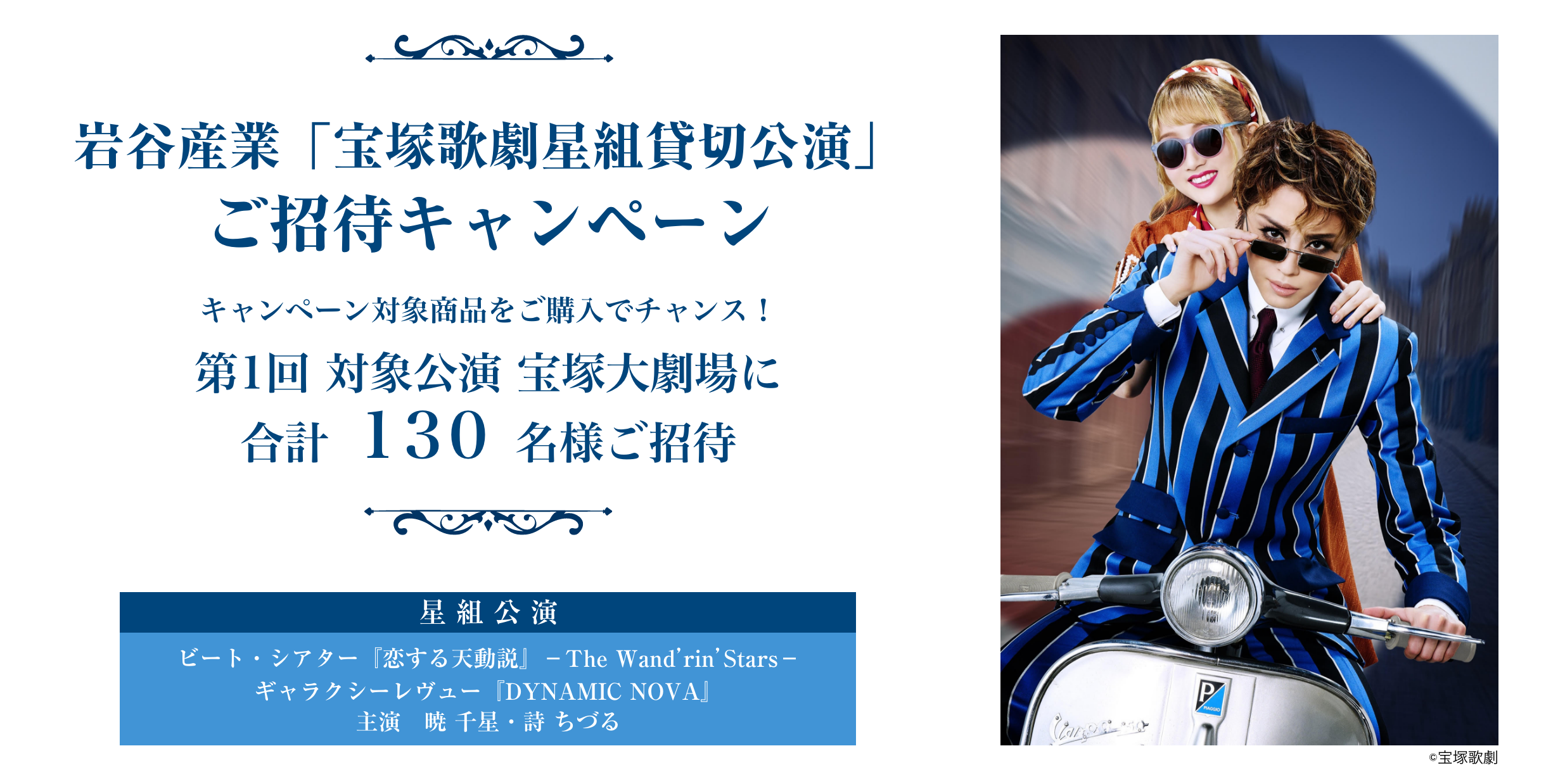 岩谷産業株式会社(以下、岩谷産業株式会社及びその子会社を総称して「当社グループ」といいます。)が主催する「宝塚歌劇星組 岩谷産業貸切公演ご招待キャンペーン」(以下、「本キャンペーン」といいます。)にご応募いただく前に、下記の応募規約(以下、「本規約」といいます。)および「個人情報の取り扱いについて」をよくお読みいただき、同意の上でご応募ください。