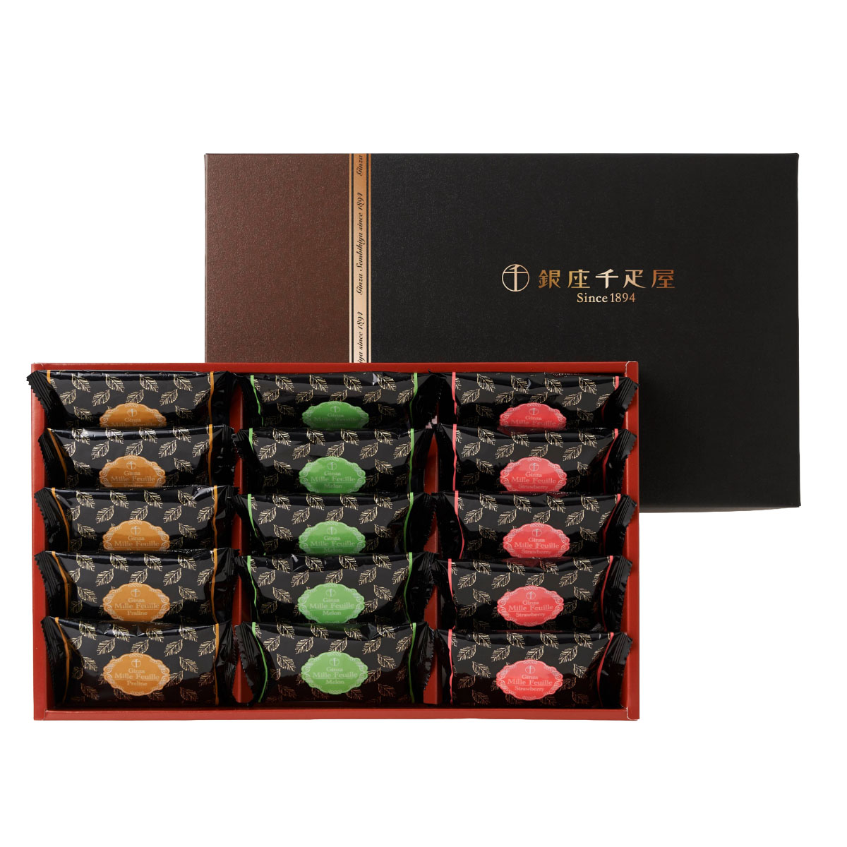 サクサクのパイ生地に風味豊かなクリームを挟み、チョコレートでコーティングした銀座千疋屋オリジナルのミルフィーユです。