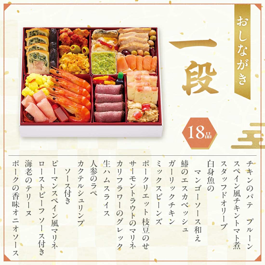 第十代総料理長 伊藤博之の監修による、歴史と伝統の味が盛り込まれた洋風オードヴル。ローストビーフ、テリーヌ、マリネなどご家庭ではなかなか作れないお料理が、クリスマスや年末年始のお集まりに重宝する商品。
