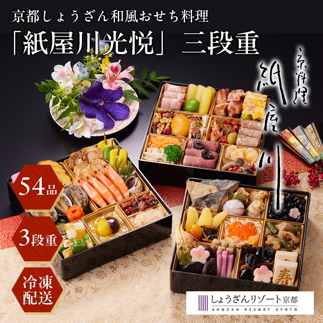 - ★販売開始前[12月29日・30日お届け 日時配達指定不可]京都しょうざん おせち料理「紙屋川光悦」三段重<冷凍>