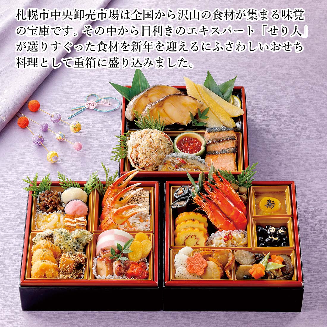 - ★完売御礼・販売終了[12月29・30日お届け 日時配達指定不可]札幌市中央卸売市場発 海鮮おせち「北都膳」三段重<冷凍>