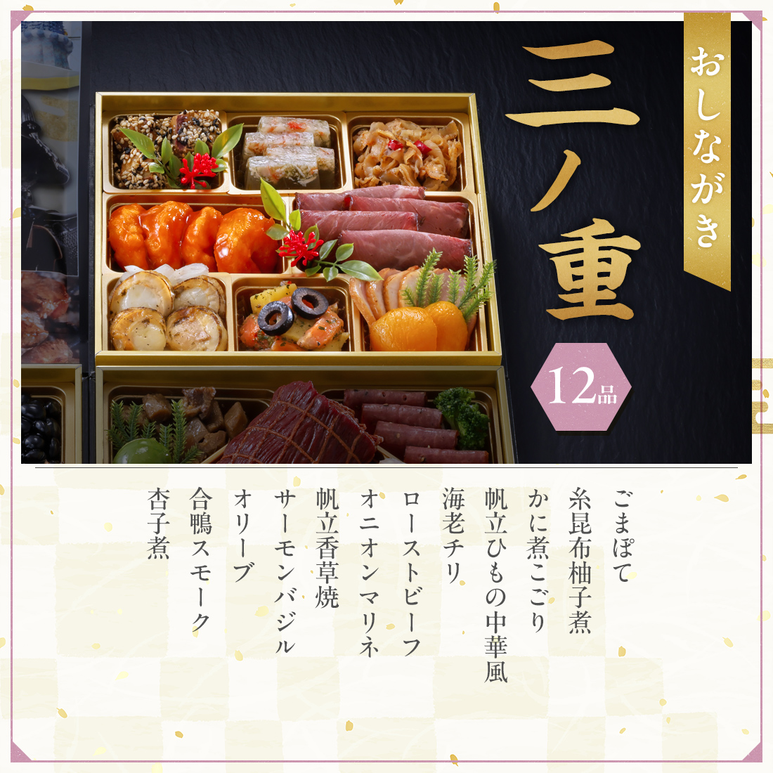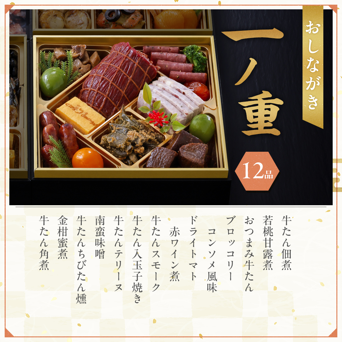 - [12月29日・30日お届け 日時配達指定不可]「牛たん炭焼 利久」和洋中おせち三段重 亀<冷凍>