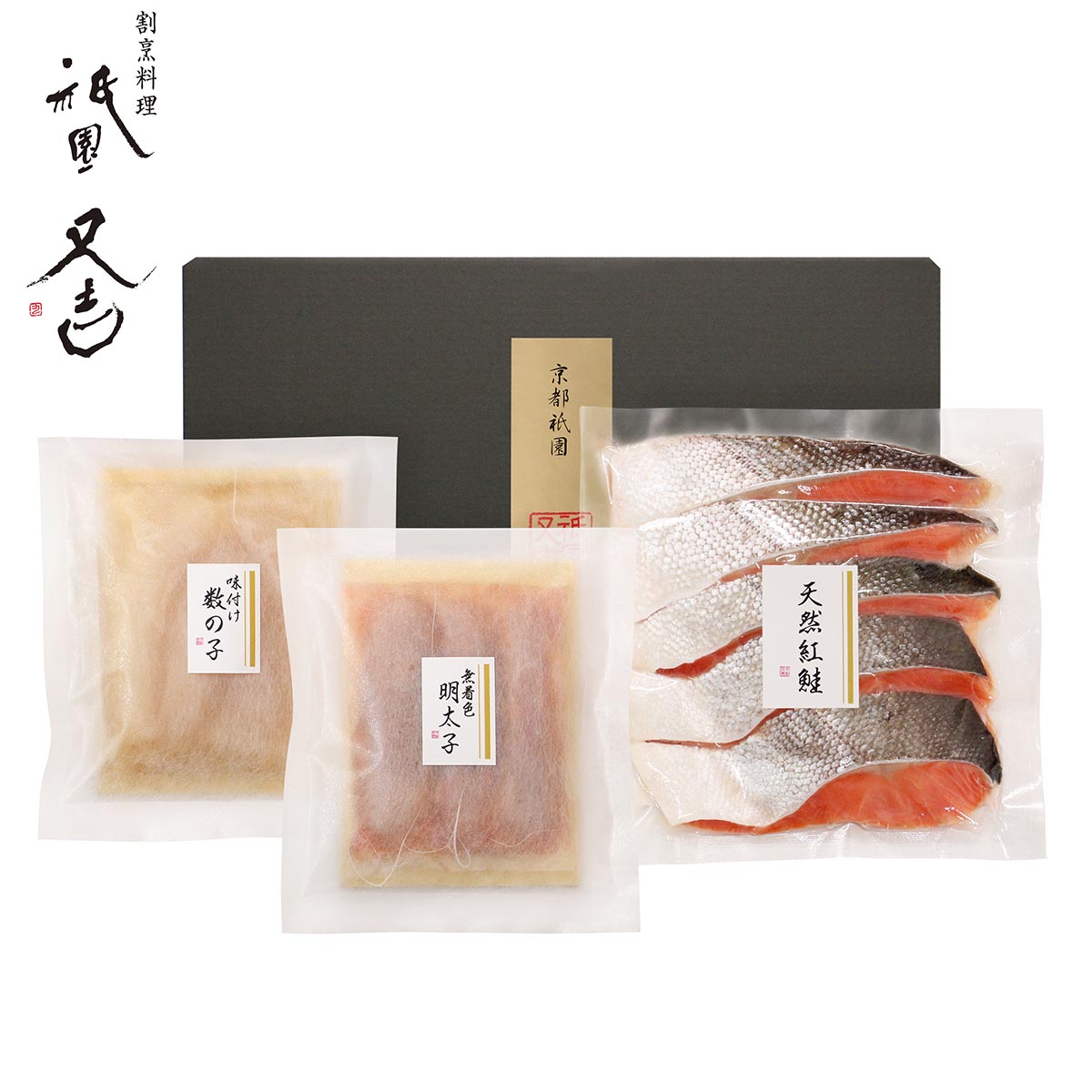 脂がのった紅鮭、北海道で味付けされた数の子、博多加工の無着色明太子。北と南の美味が見事に饗宴した、贅沢な詰合せです。