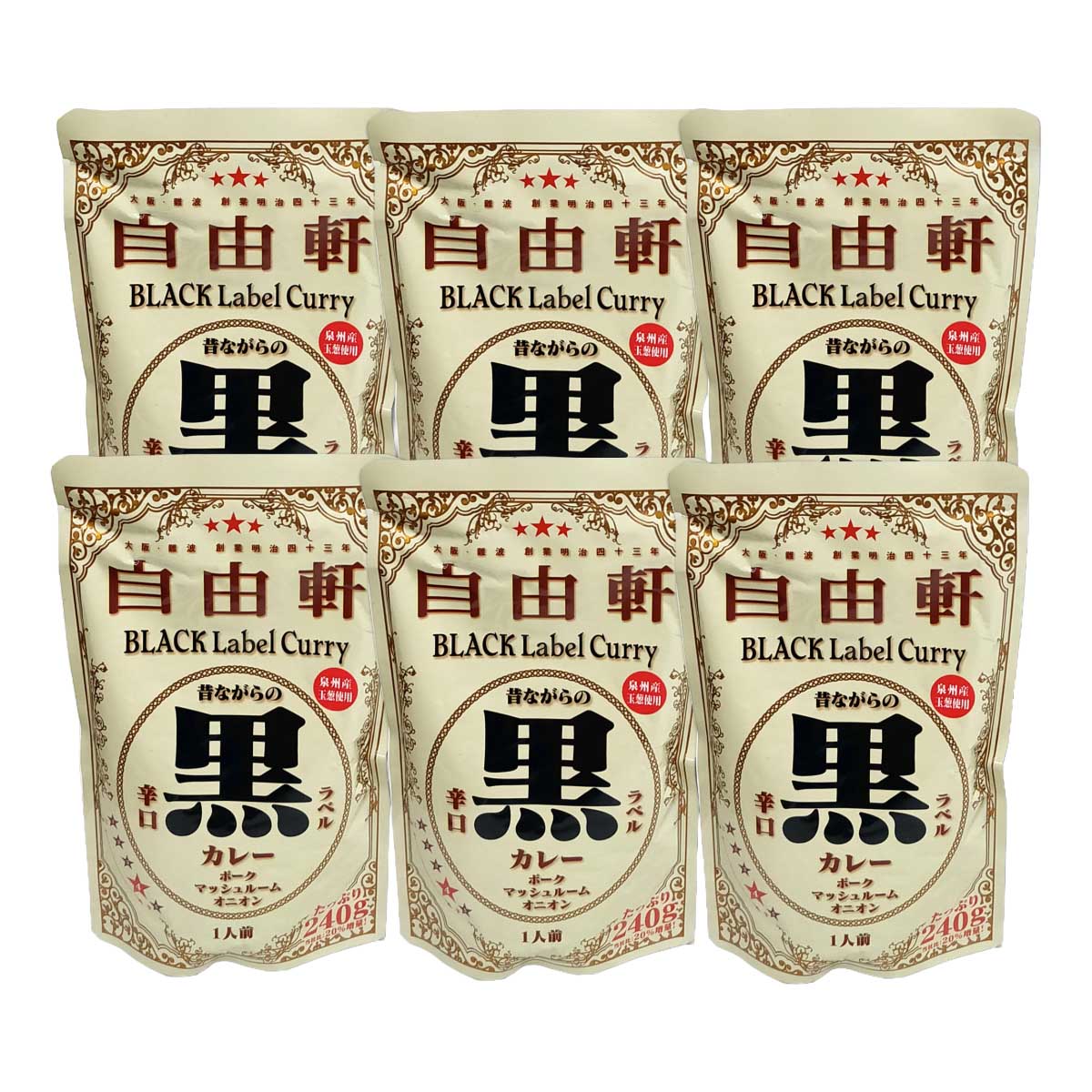 - 自由軒 昔ながらの黒ラベルカレー6個セット(泉州産玉葱使用オリジナル商品)JKPS-6I