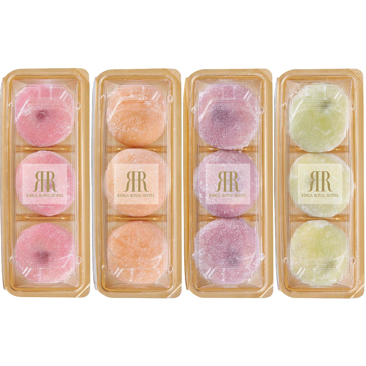 4種のフルーツジャムをクリームで閉じ込め、甘さ控えめの滑らかな食感のもちもち大福生地で包みました。