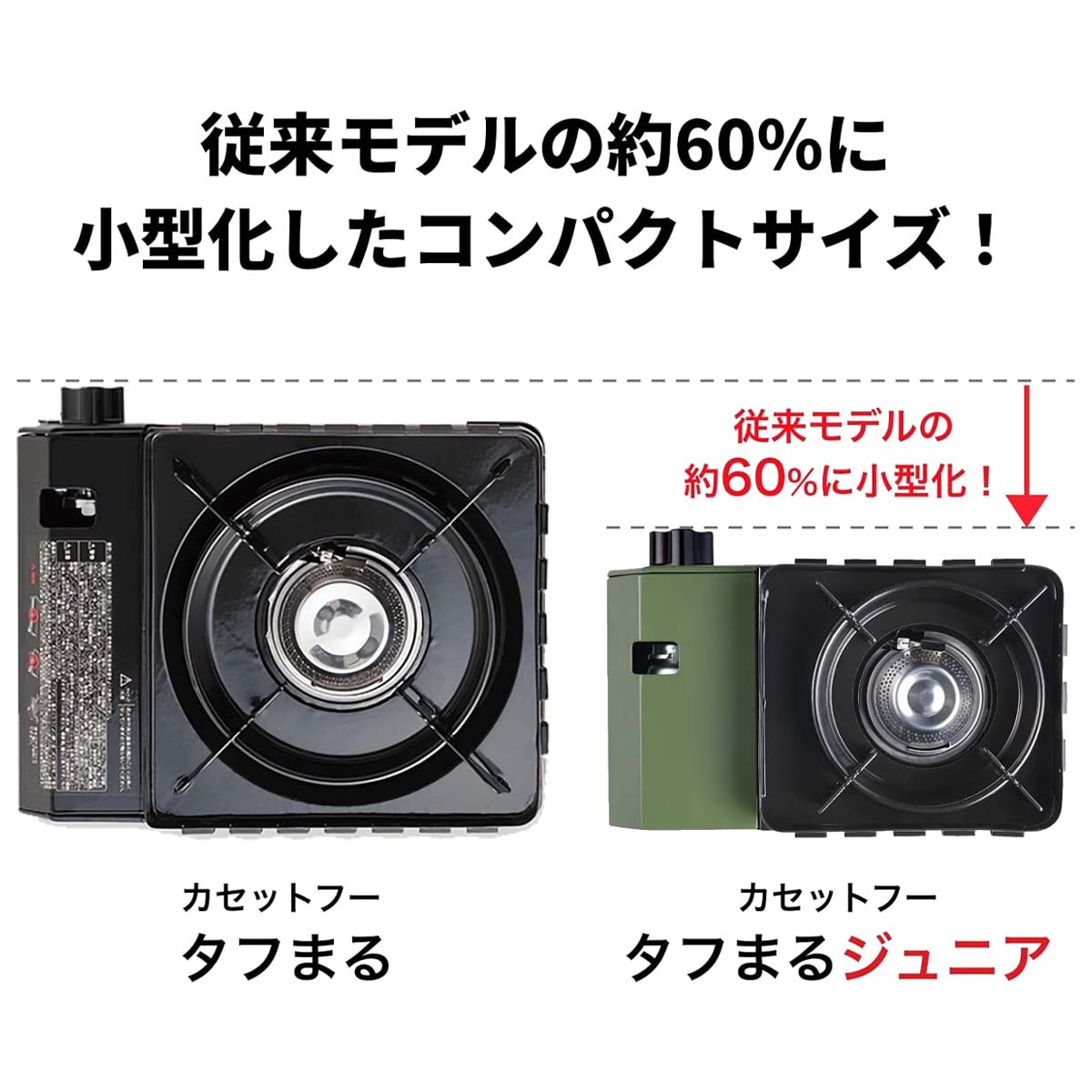 人気のカセットこんろタフまるジュニア オリーブとジュニアマルチプレートガラス蓋付き、ジュニア焼肉プレートのセット!