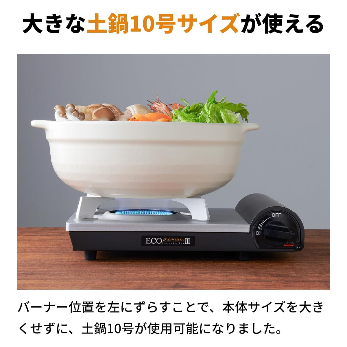 ■通常のカセットこんろでは土鍋9号迄が使用の目安でしたが、本品では土鍋10号がご使用いただけます。