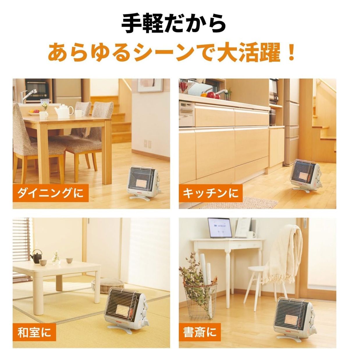 小さく軽量なので、置き場所にスペースを取ることもなく、女性でもどこでも簡単に暖がとれます。