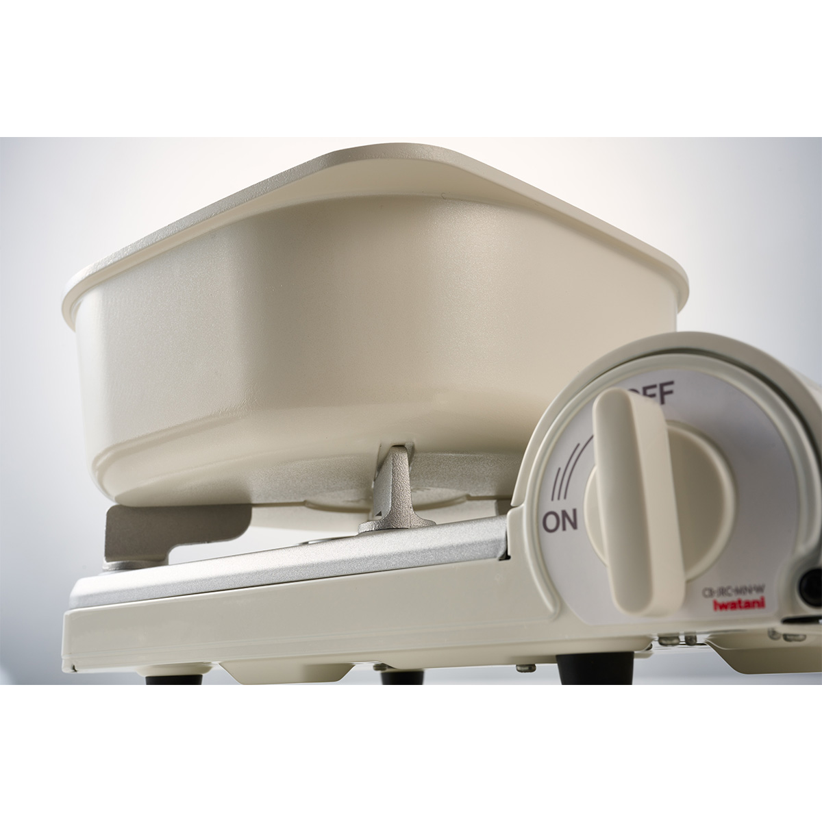 鍋底の4つのくぼみがカセットこんろのごとくにはまる。安定した使用感で安心。位置調整の煩わしさも軽減します。