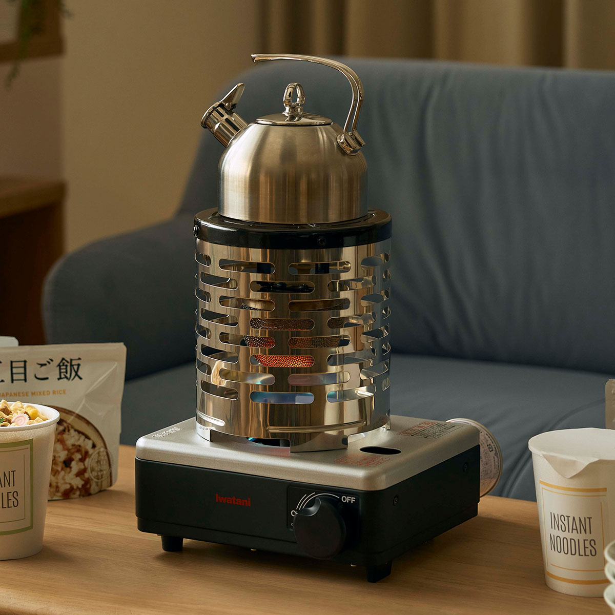 ・ストーブユニット天面にやかん等を置いて加湿も可能。暖を取りながらお湯も沸かせます。