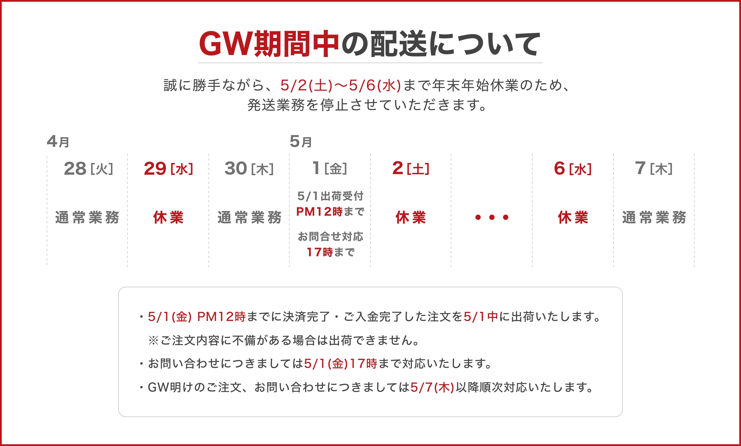 GW期間中の配送について
